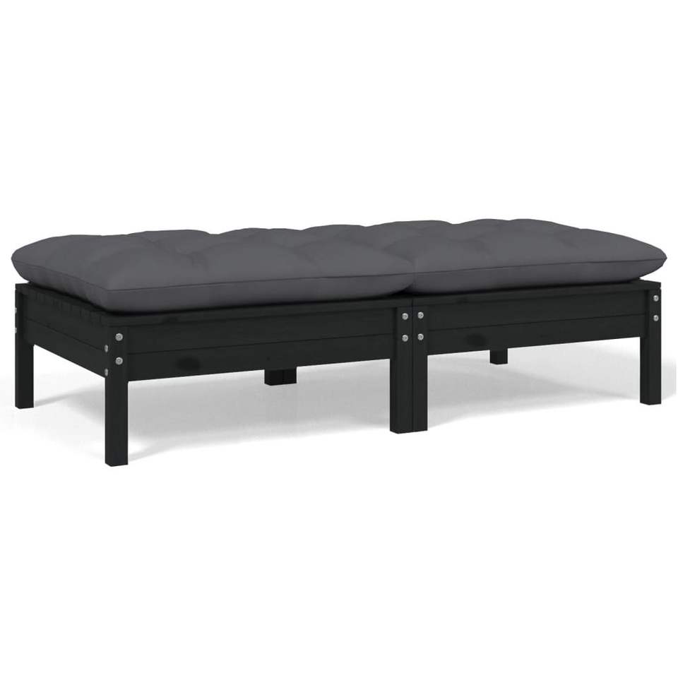 Set di divani da giardino composto da 2 mobili da esterno in legno nero, design minimalista, cuscino in schiuma ad alta densità