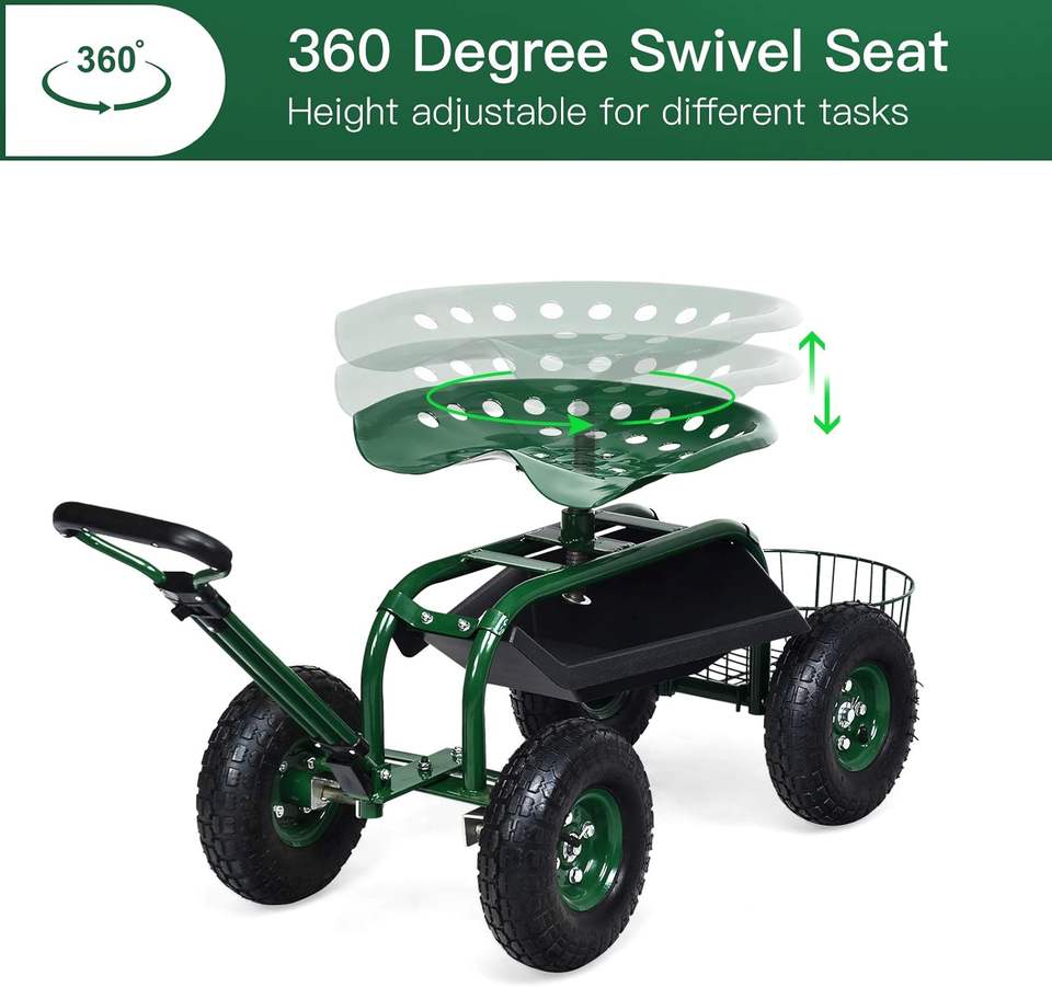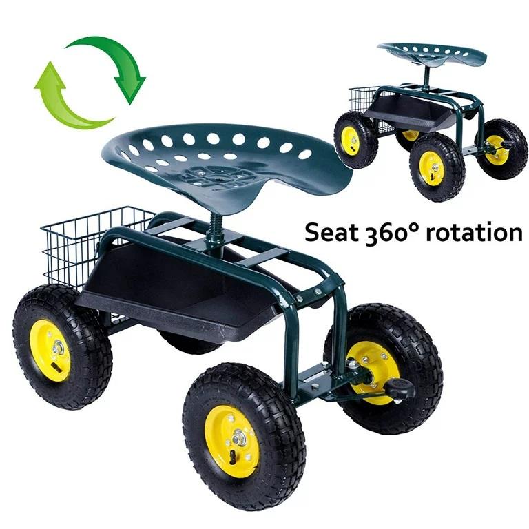 Garden Trolley Rolling Work Chair Garden Stool Planting 360 Degree Swivel Seat Station Wagon Scooter Utility Tray Yard Outdoors