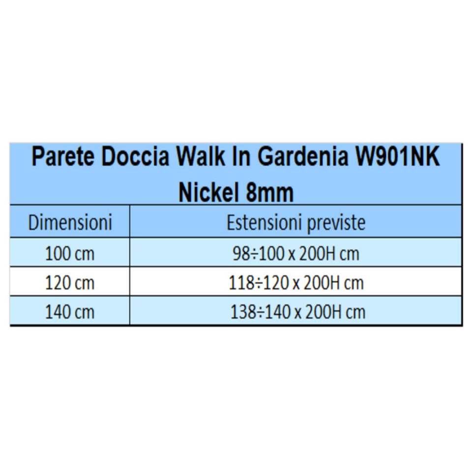 Gardenia W901NK Walk-In Shower Wall 8mm Nickel Crystal IX Enclosure Size 120cm Adjustable Stylish Shower Rooms