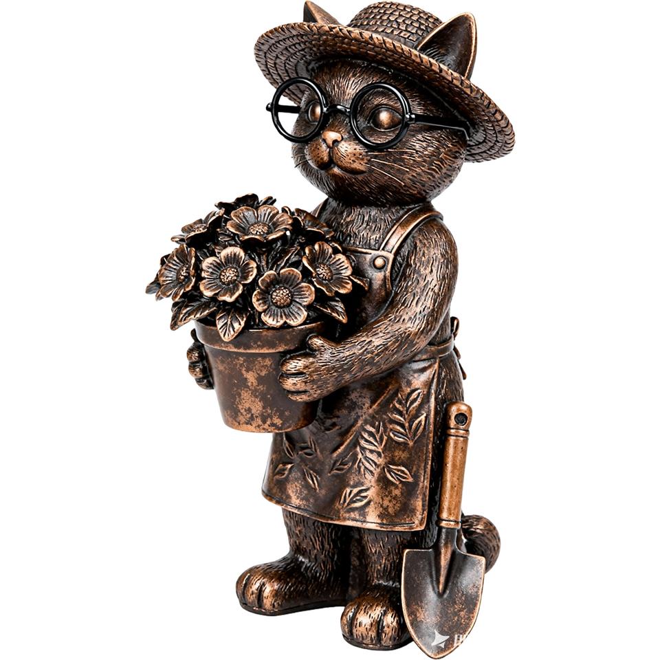 Statuetta in Poliresina di Gatto Giardiniere con Vaso di Fiori e Cappello, Decorazione da Giardino Fantasiosa per Casa, Artigianato in Poliresina Personalizzato all'Ingrosso