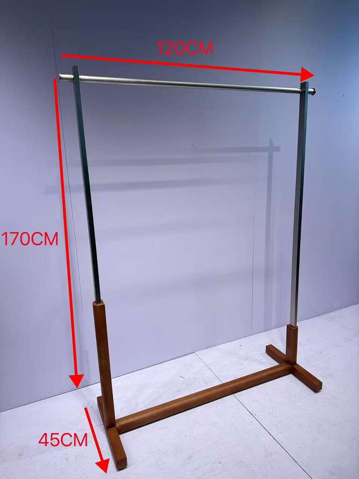 Espositore per Abbigliamento Personalizzato in Acciaio Inox e Legno, Stand per Negozi di Abbigliamento Femminile