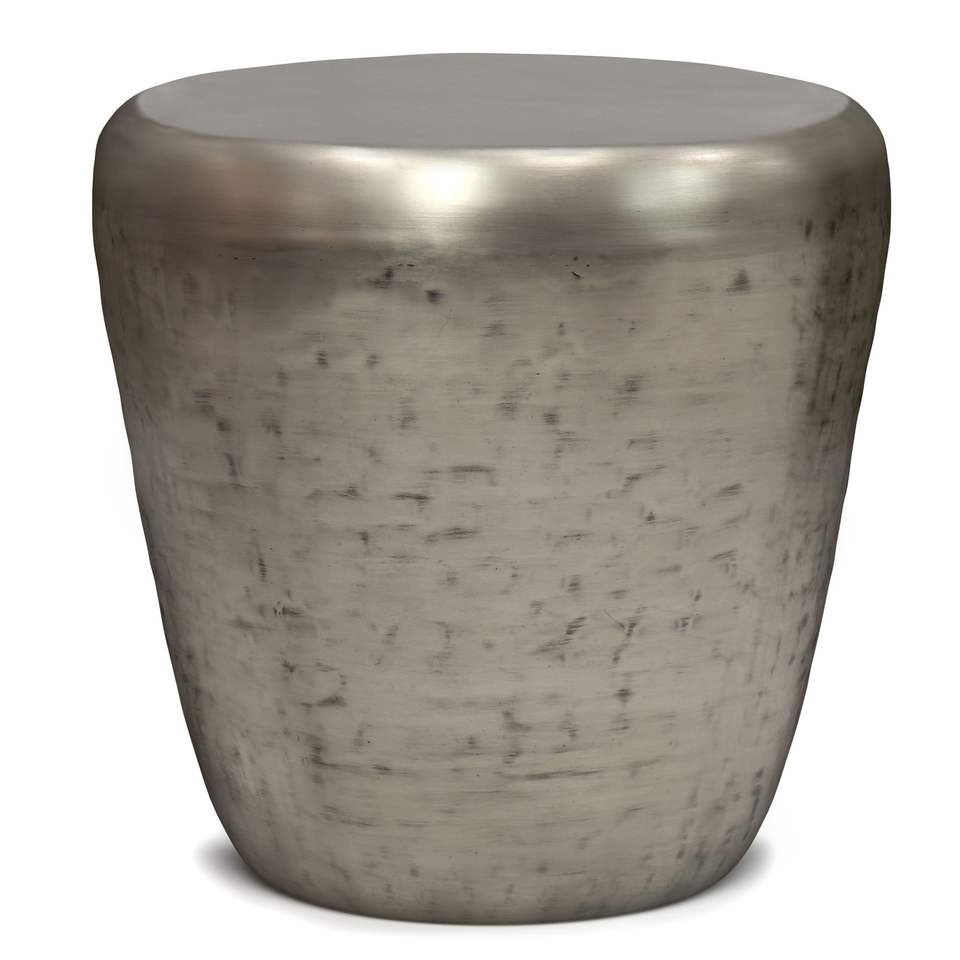 Tavolino Laterale Garvy in Metallo Argento Anticato, Elegante Arredamento per Soggiorno