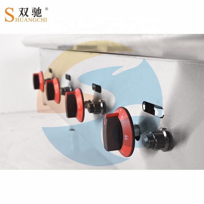 Heavy Duty Construction: This commercial gas griddle is built with heavy-duty stainless steel and cast iron materials, ensuring durability and long-lasting performance in high-traffic kitchen environments, such as in restaurants and hotels.