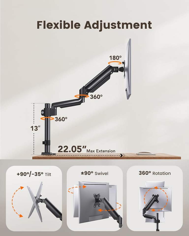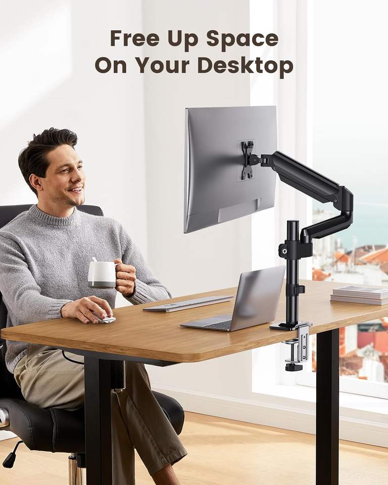 Molla a Gas Full Motion con Base a Grommet a morsetto a C, supporto per braccio di montaggio per Monitor per Computer da 13 a 32 pollici,