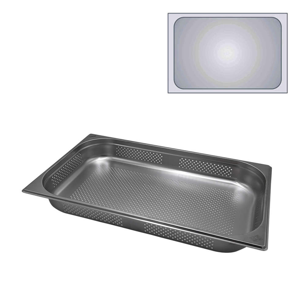 Vassoio in Acciaio Perforato Gastronorm GN 1/1 CM.53X32,5X10H per Cucina Commerciale