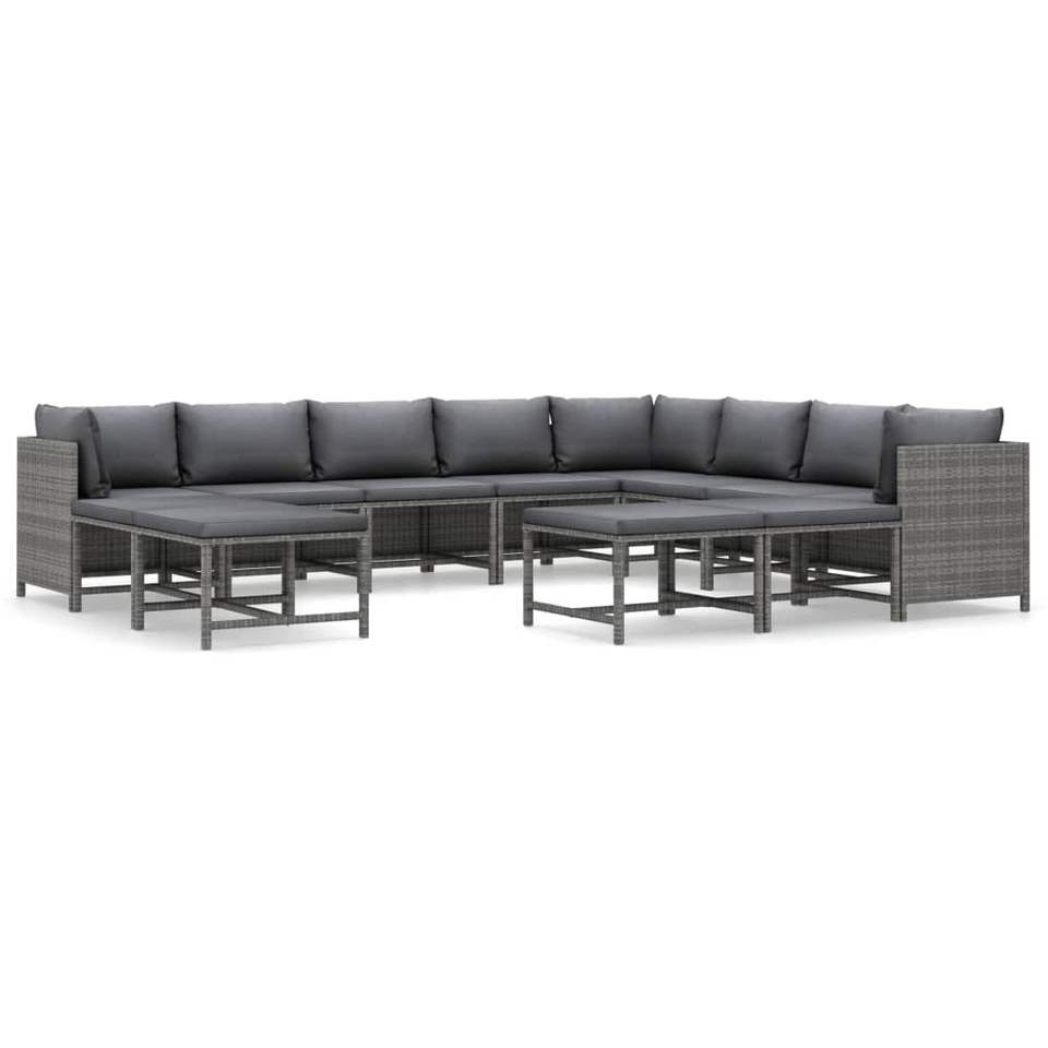 Set da giardino Gatten Lounge a 12 pezzi in rattan PE grigio e antracite, mobili da esterno