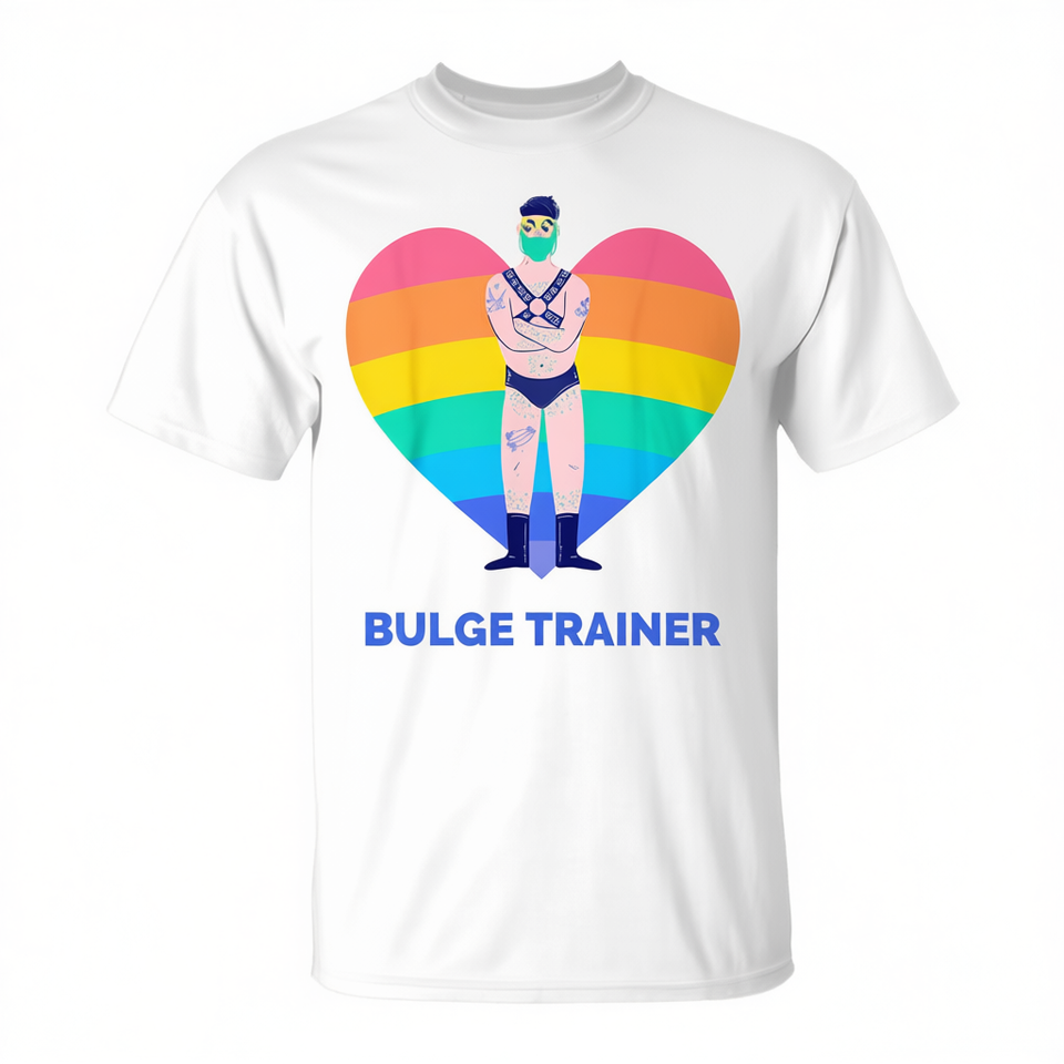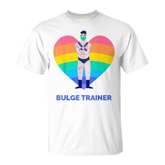 T-shirt Gay Bear Bulge Trainer Rainbow con design a cuore Pride, vestibilità unisex