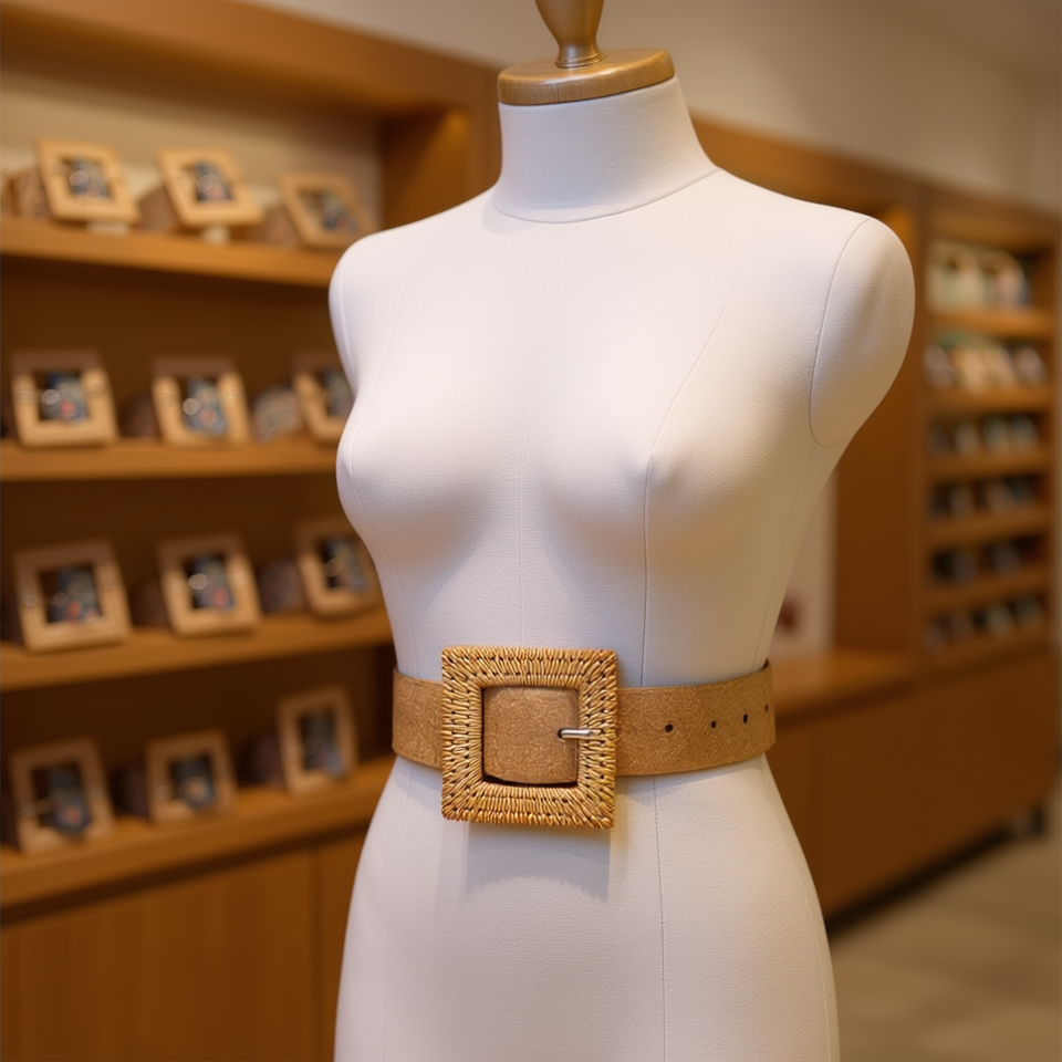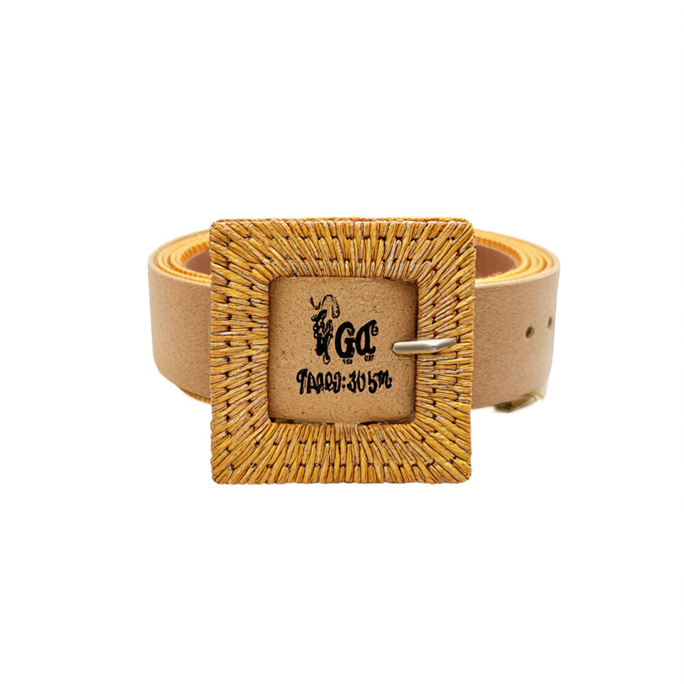 Cintura con fibbia quadrata in resina Gc Bark, larghezza 3,5 cm, cintura in tessuto stile bohémien per donne e ragazze
