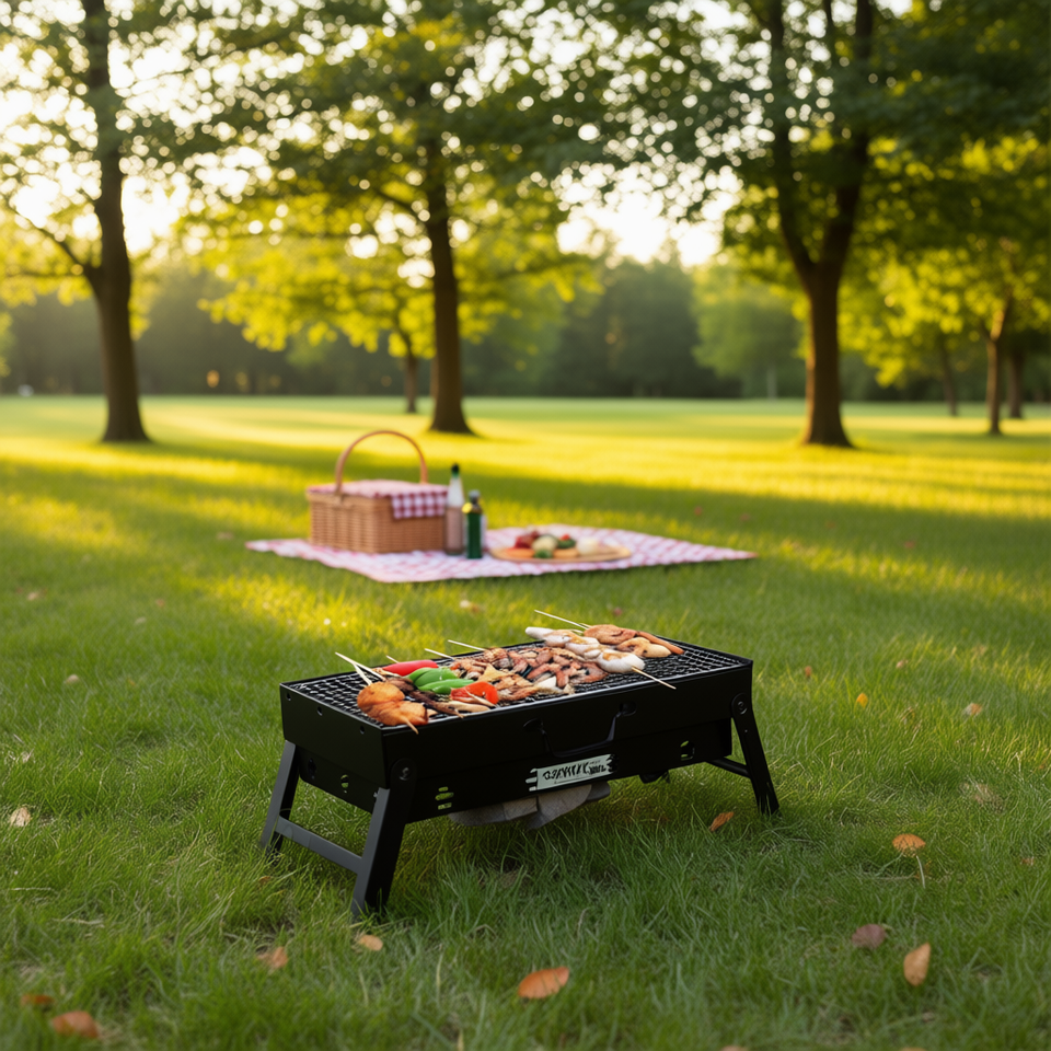 Gearsmate Portable Foldable Charcoal BBQ Grill 28x15 Cm For Camping Picnics Outdoor Use Metal Construction