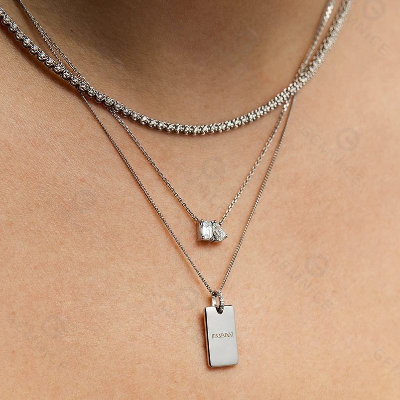 Gemnel 18k Gold Custom Engravable Rectangle square Fashion Jewelry Pendant Necklace