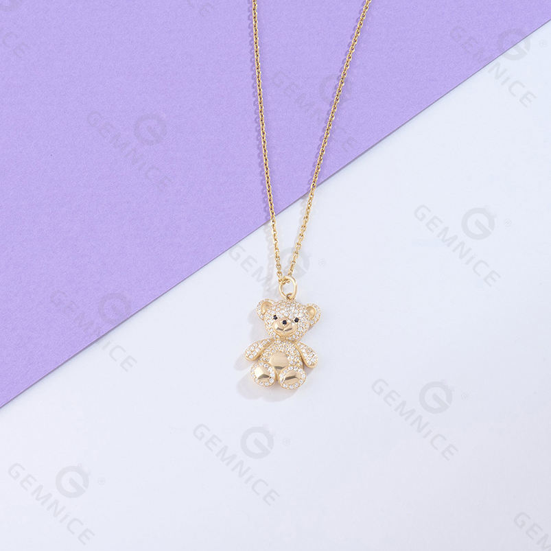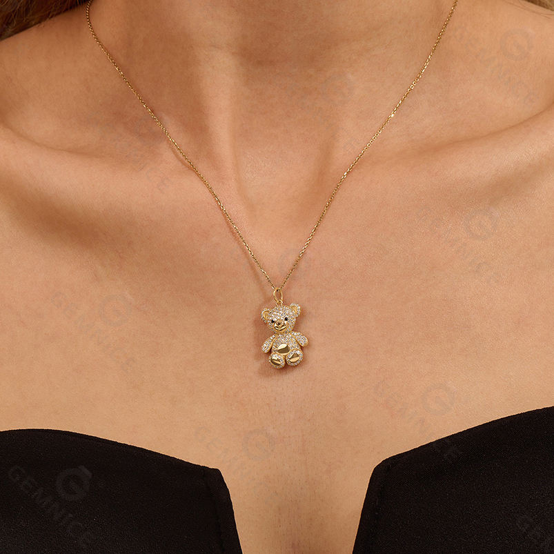 Gemnel 925 Silver Teddy Bear Necklace in 14K Gold 925 Silver CZ Pendant Symbol of Love & Comfort Delicate Jewelry Gift