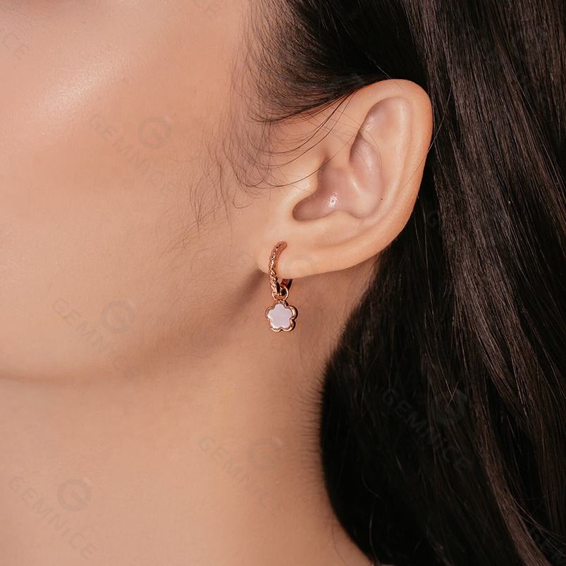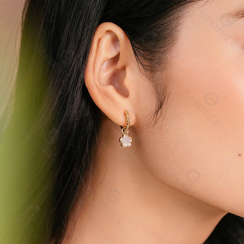 Gioiello di moda Gemnel CZ hoop ciondolo giocoso ciondoli in madreperla 925 orecchini a fiori in oro argento
