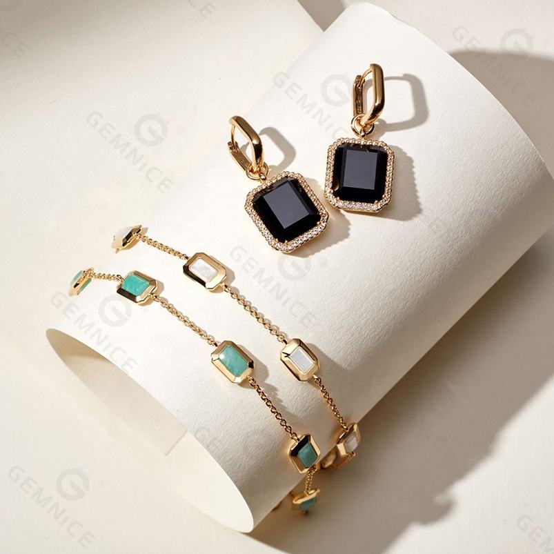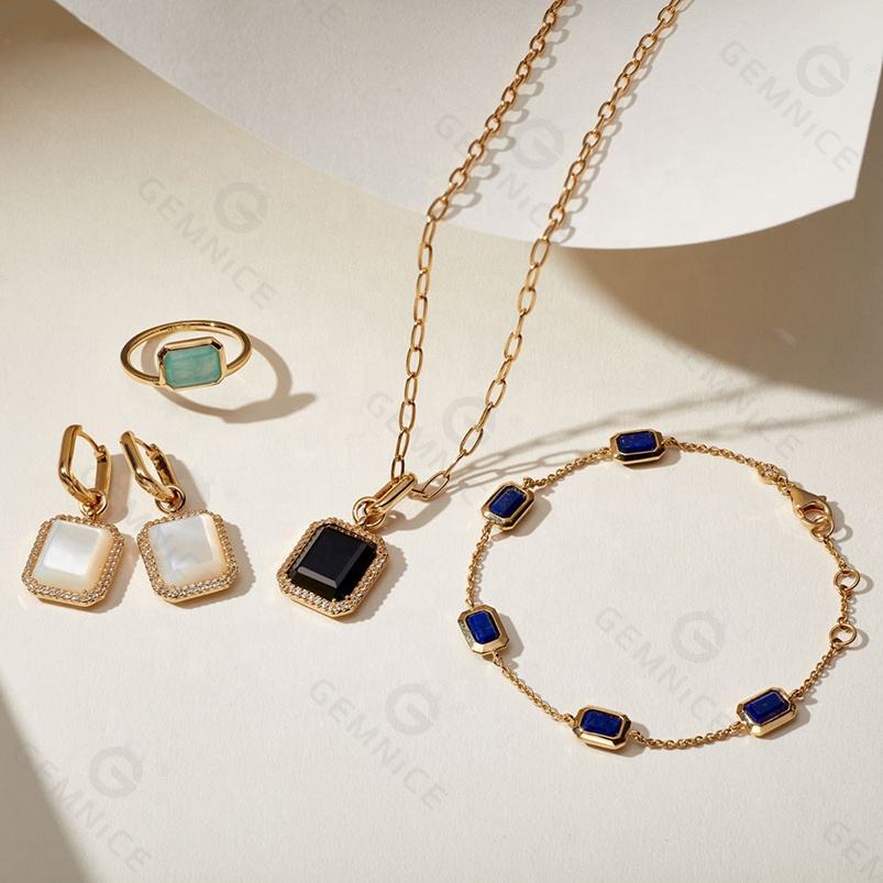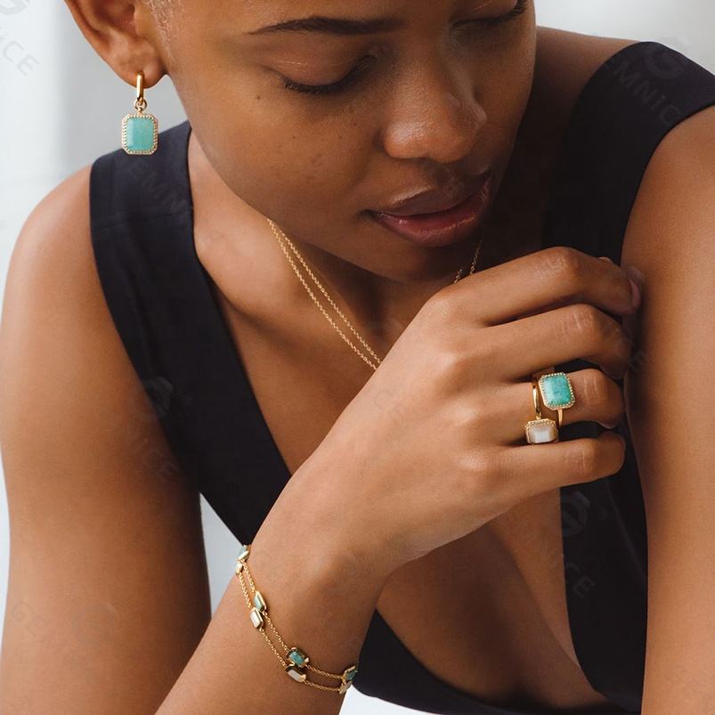 Bracciale Tennis Gemnel Fatto a Mano in Argento 925 Placcato Oro con Pietre Preziose, Amazonite Taglio Baguette