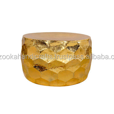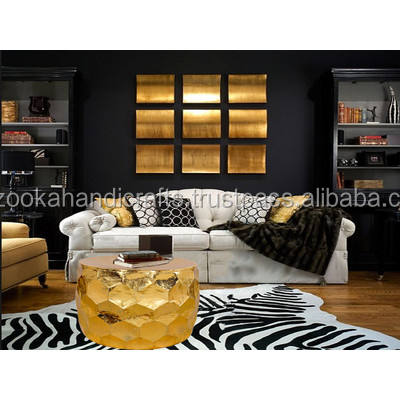 Gemoratic Hammered Gold Leaf Metal Coffee Table, Decorative Metal Table, Antique Table