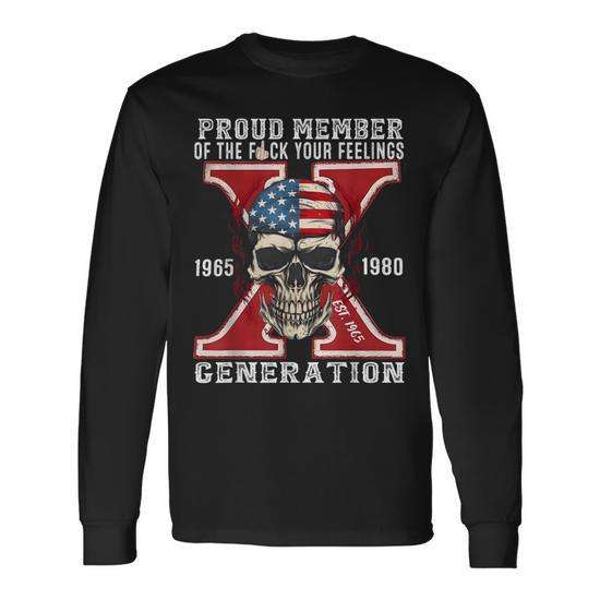 T-shirt a maniche lunghe con stampa scheletro Gen X Proud Member, generazione 1965-1980