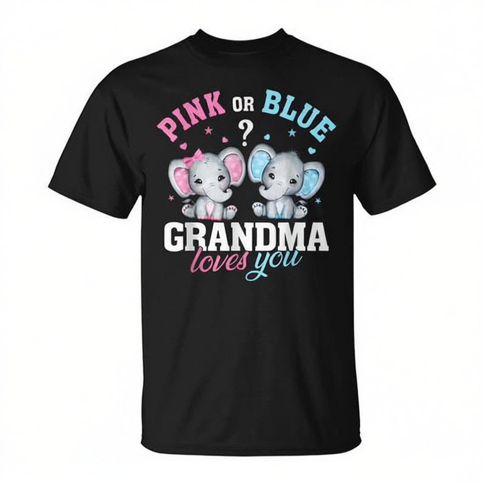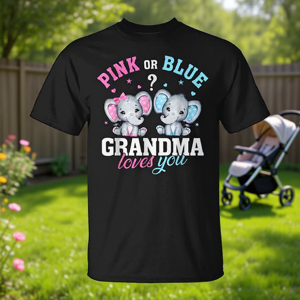 Maglietta Gender Reveal per nonna, t-shirt rosa o blu con elefante, nonne ti amano