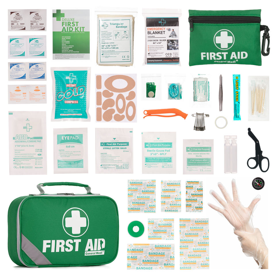 General Medi HAK5002-258-G High Quality Waterproof Manual Survival First Aid Kits for Emergency Medical Supplies Training