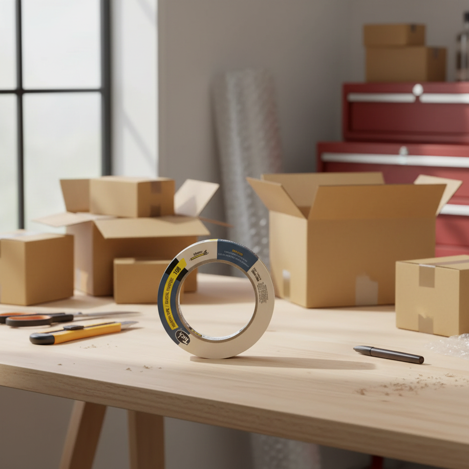 General Purpose Masking Tape 12mm x 50m, Kraft Paper Backing, PU Adhesive, No Residual, Single Sided, Pressure Sensitive, 6-Pack