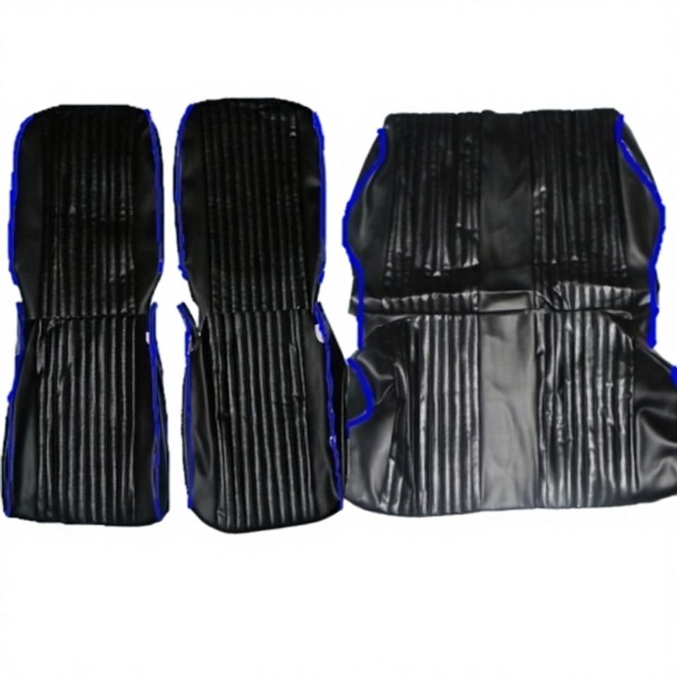 Generic FIAT 500 F L Complete Sportiva Tappetzeria Black Leather Seat Covers with Blue Profiles