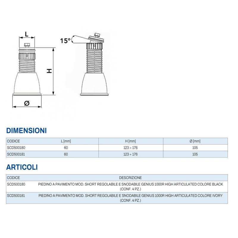 Piedini Regolabili e Articolati Genius 1000r per Sistemi Tecnosystemi di Pompe di Calore e Condizionatori d'Aria