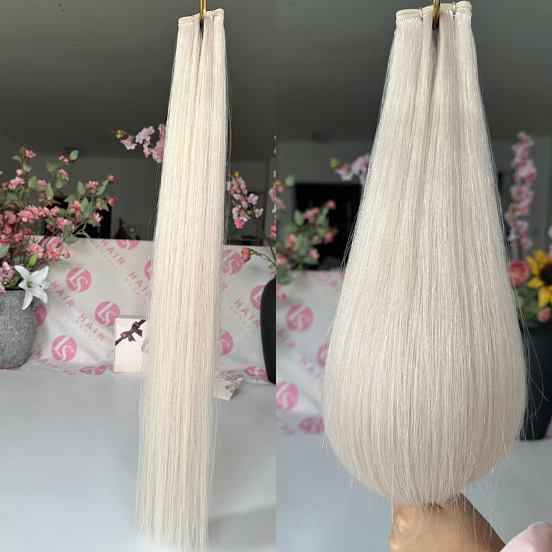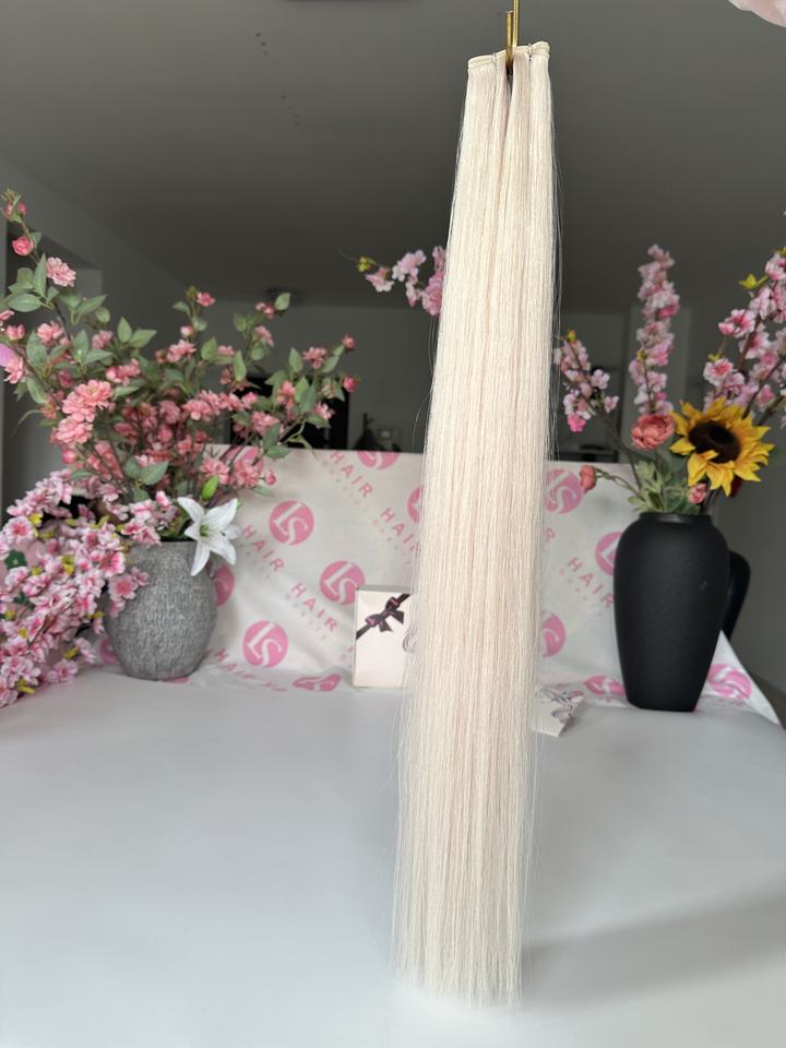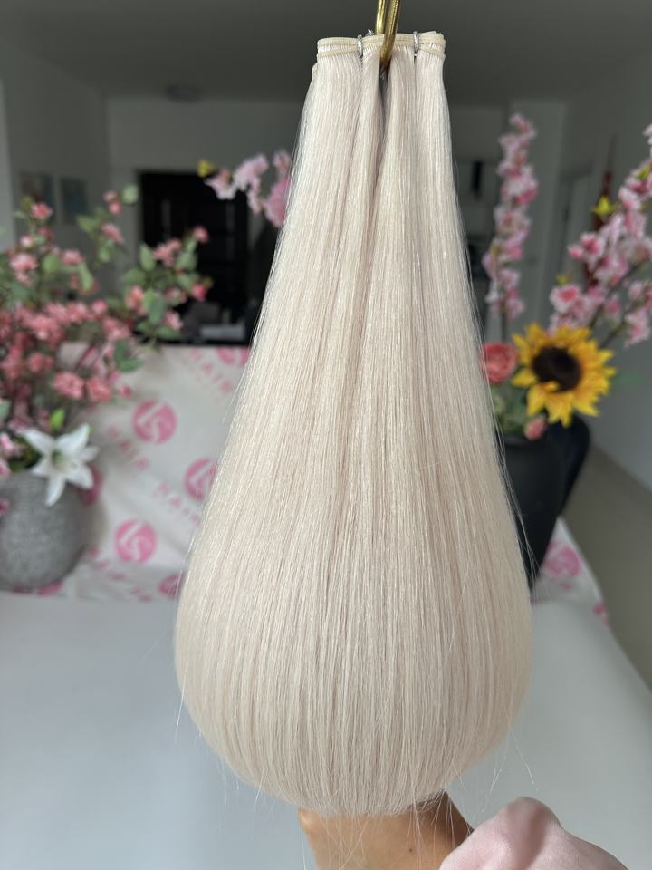 Extension per Capelli Genius Weft 20 Pollici Biondo Cenere e Biondo Chiaro Annodati a Mano per Donne 50G
