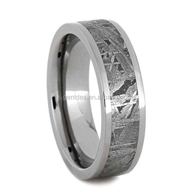 Gentdes Jewelry 4mm/6mm/8mm Real Meteorite Ring Titanium Band Jewelry Comfort Fit Real Meteorite Wedding Ring for Men