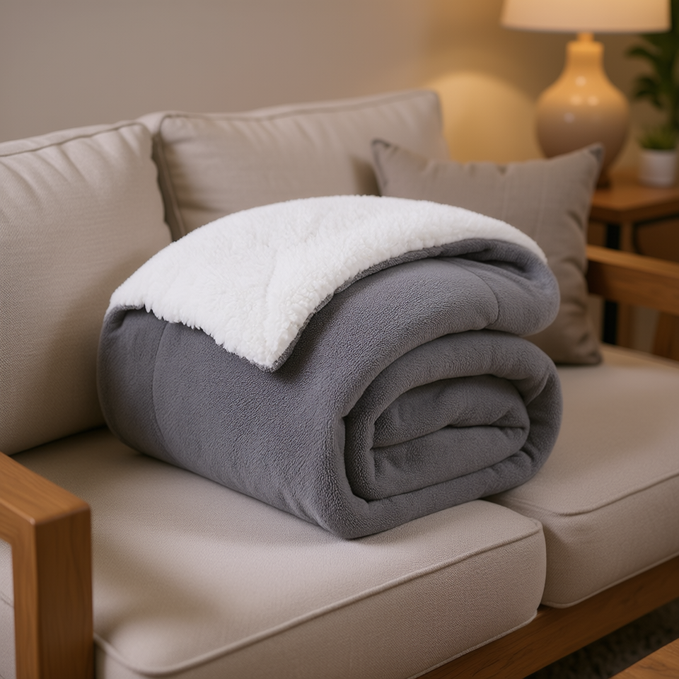 Gentle Soft Sherpa Fleece Throw Blanket Gray Thick Warm Couch Cover All Season Rectangular Simple Style 100 Polyester Machine