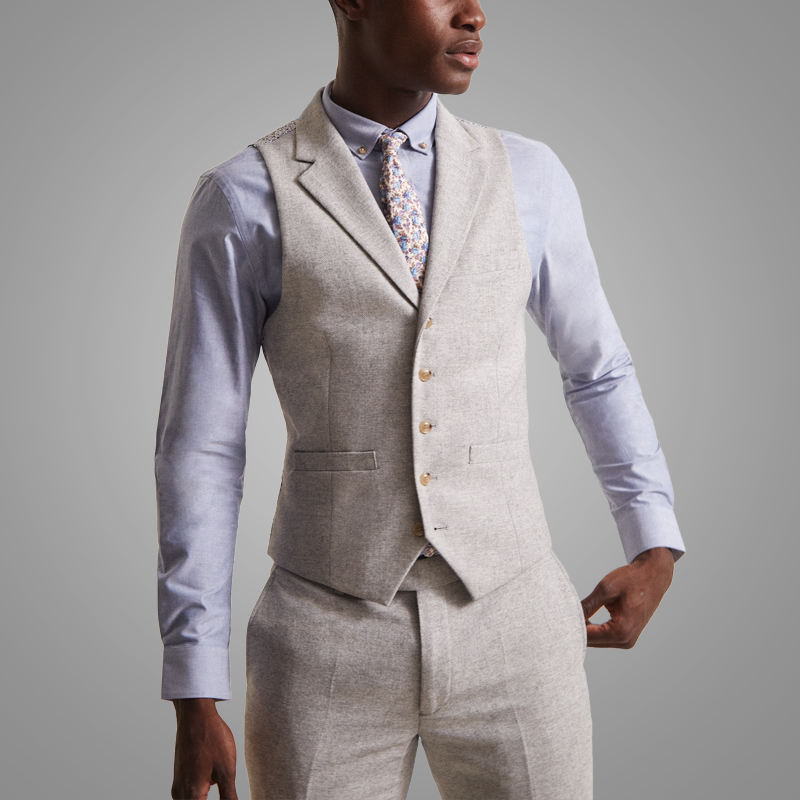 Signore Slim Fit Luce Grigio A Spina di Pesce Tweed Formale Abiti da uomo di Affari 3 pezzi Dei Vestiti Set per Gli Uomini