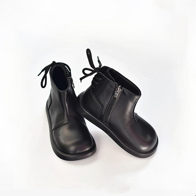 Stivali corti da principessa in vera pelle di vacchetta nera per ragazze in pile antiscivolo con suola morbida alla caviglia