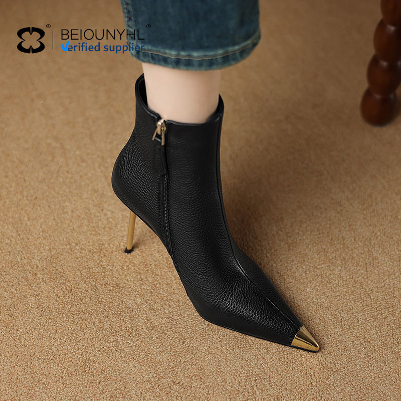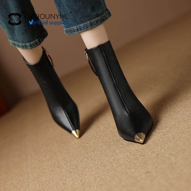 Stivali con tacco autunno inverno in vera pelle alla moda stivaletti alla caviglia con cerniera Sexy tacco alto a punta neri stivaletti