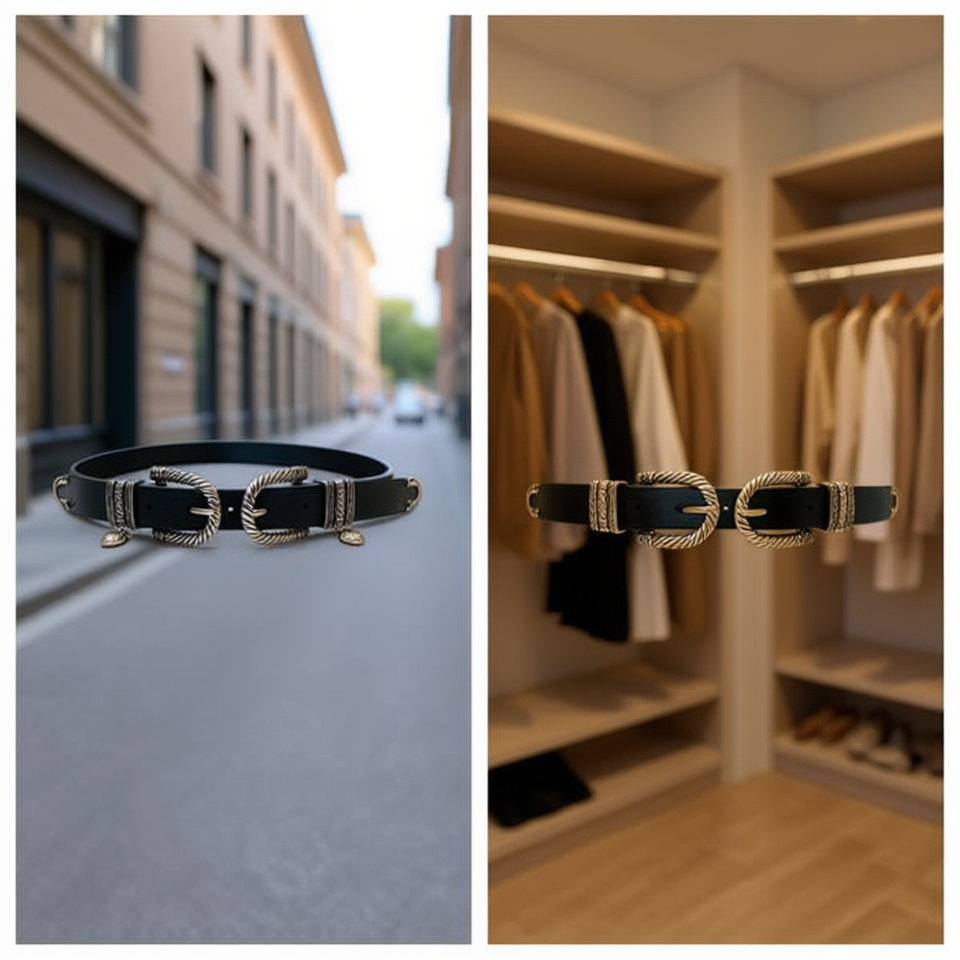 Genuine Leather Belt 2.5cm X 100cm Dual Buckle Design Fashion Waistband For Women And Men