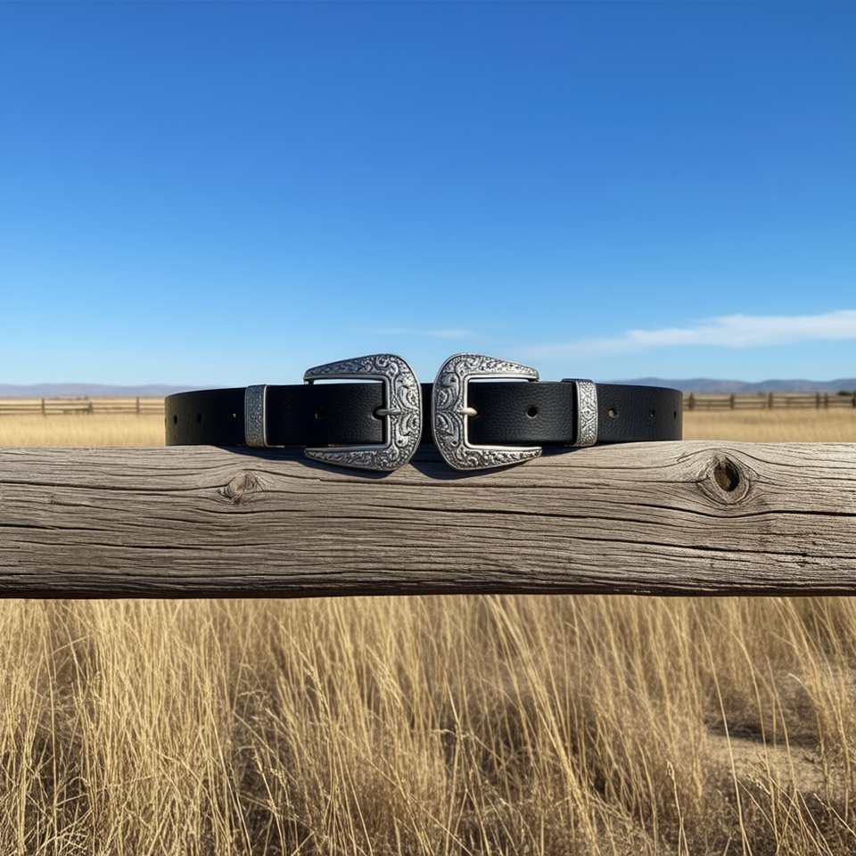 Cintura in vera pelle 3x100 cm con doppia fibbia in stile western, accessorio moda per uomo e donna