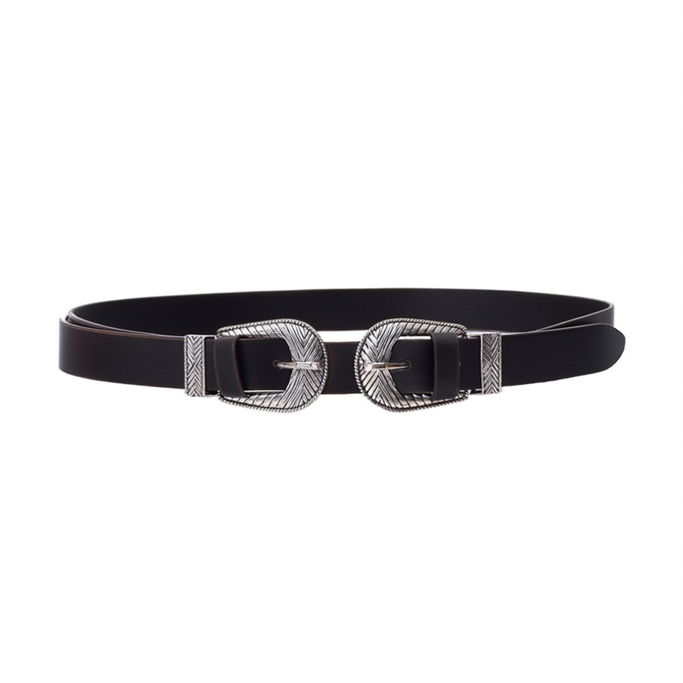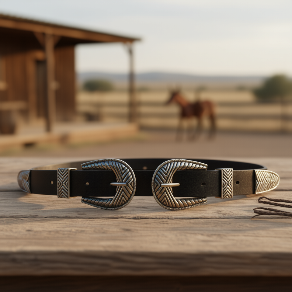 Cintura in vera pelle 3x100 cm con doppia fibbia in stile western per donna e uomo