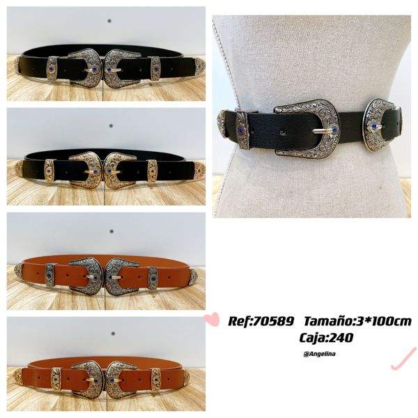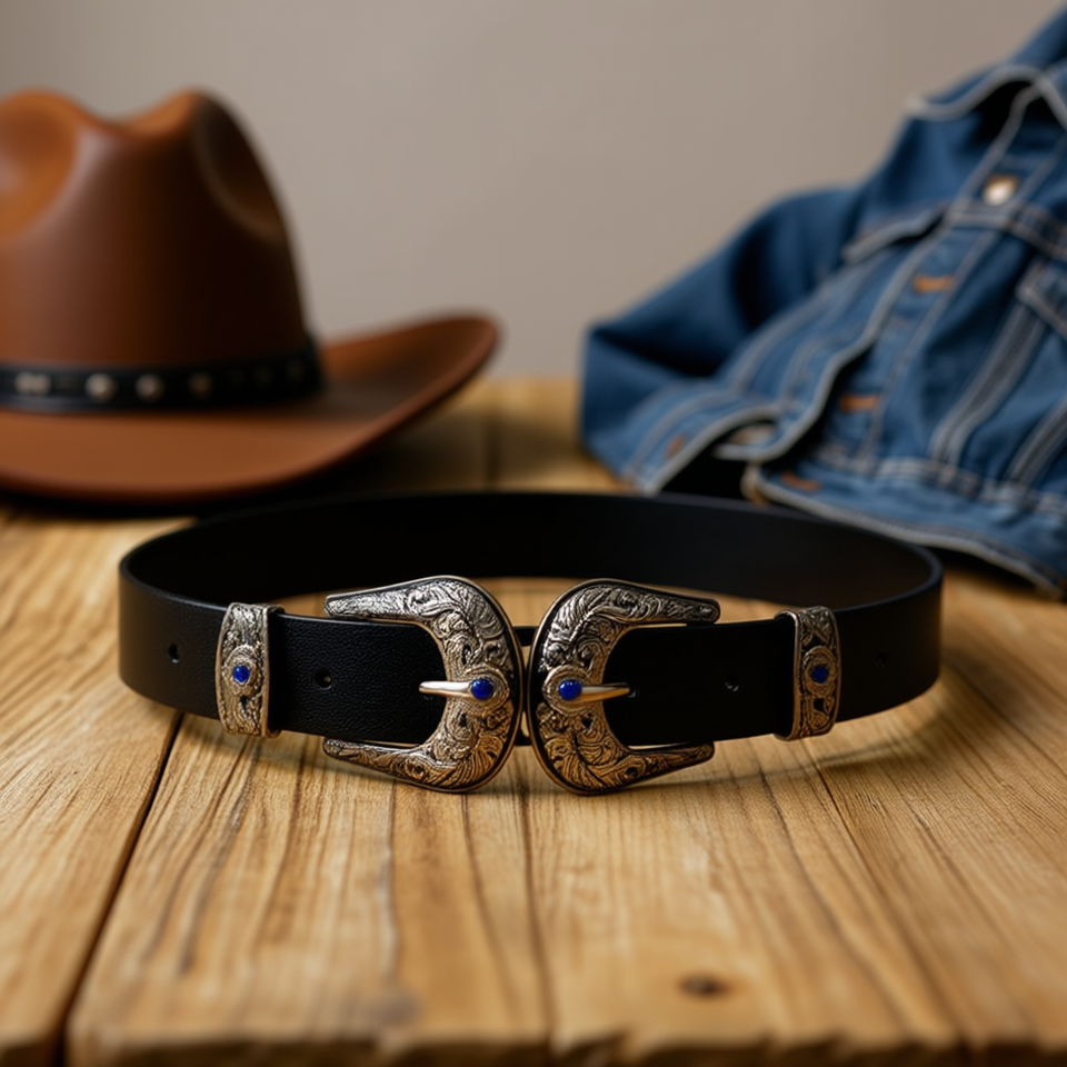 Cintura in Vera Pelle 3x100cm con Doppia Fibbia Stile Western Accessorio Moda Donna