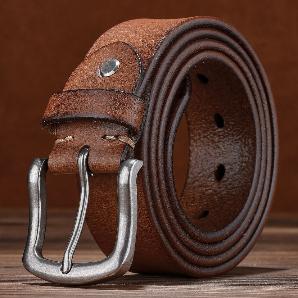 Genuine Leather Men's Women's Vintage Real Cowhide Brass Buckle Loops Strap Western Cowboy High Quality Luxury Waist Pants Belts