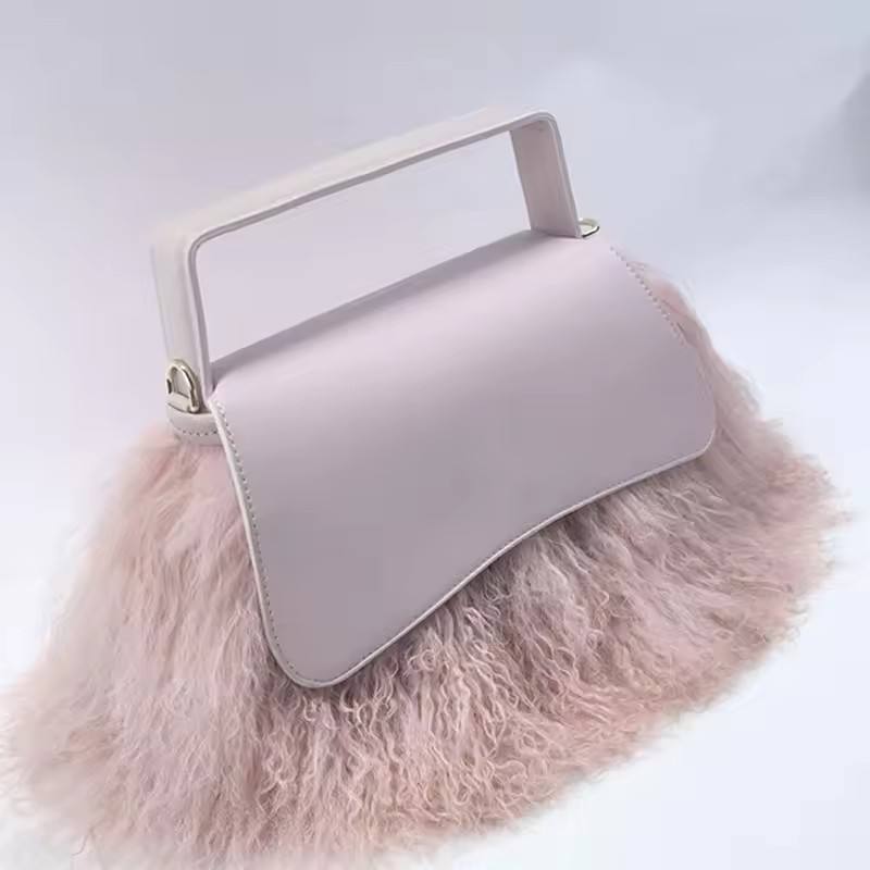 Borsa in Vera Pelle con Interno in Montone | Borsa da Donna in Vera Pelliccia di Agnello | Pronto per la Spedizione | Consegna Rapida
