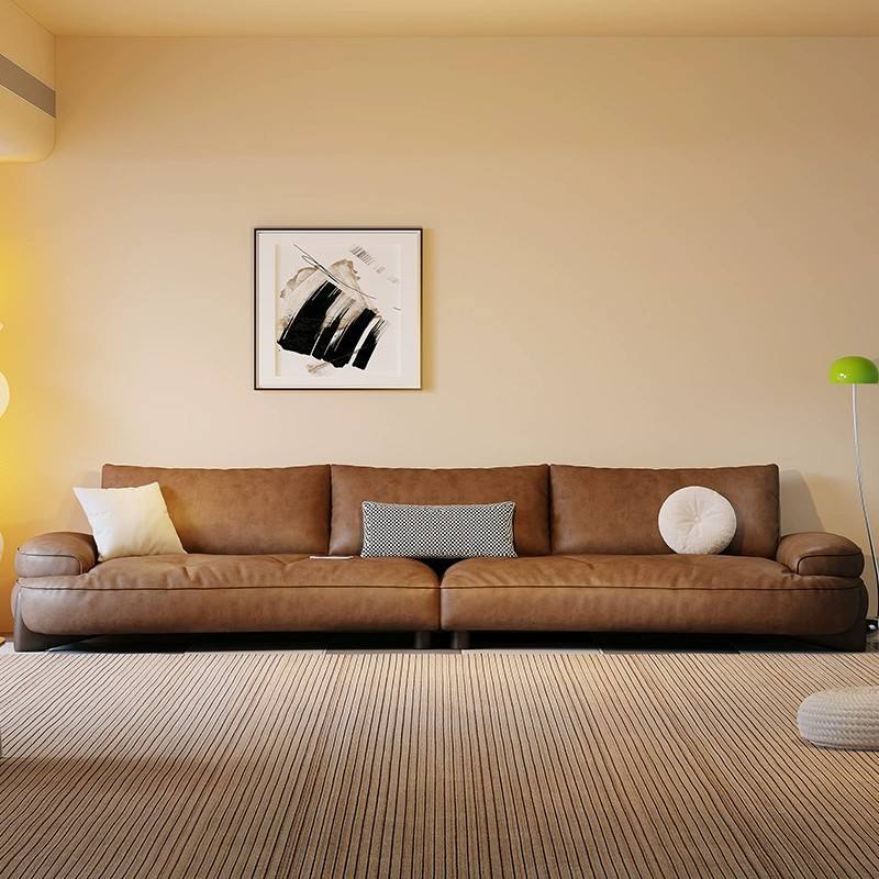 Genuine Leather Sofa for Home Living Room Modern Brown Vintage Italian Minimalist Compact Curved Creative Sofa for Small Spaces