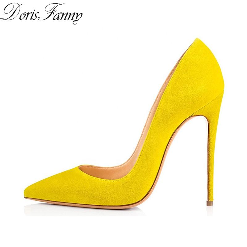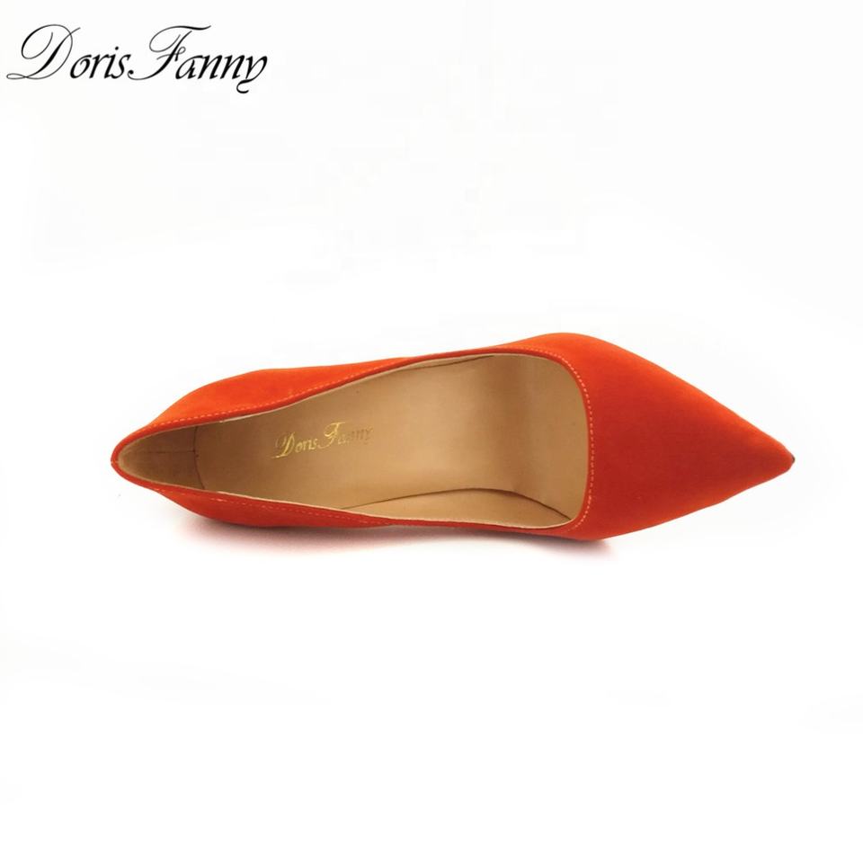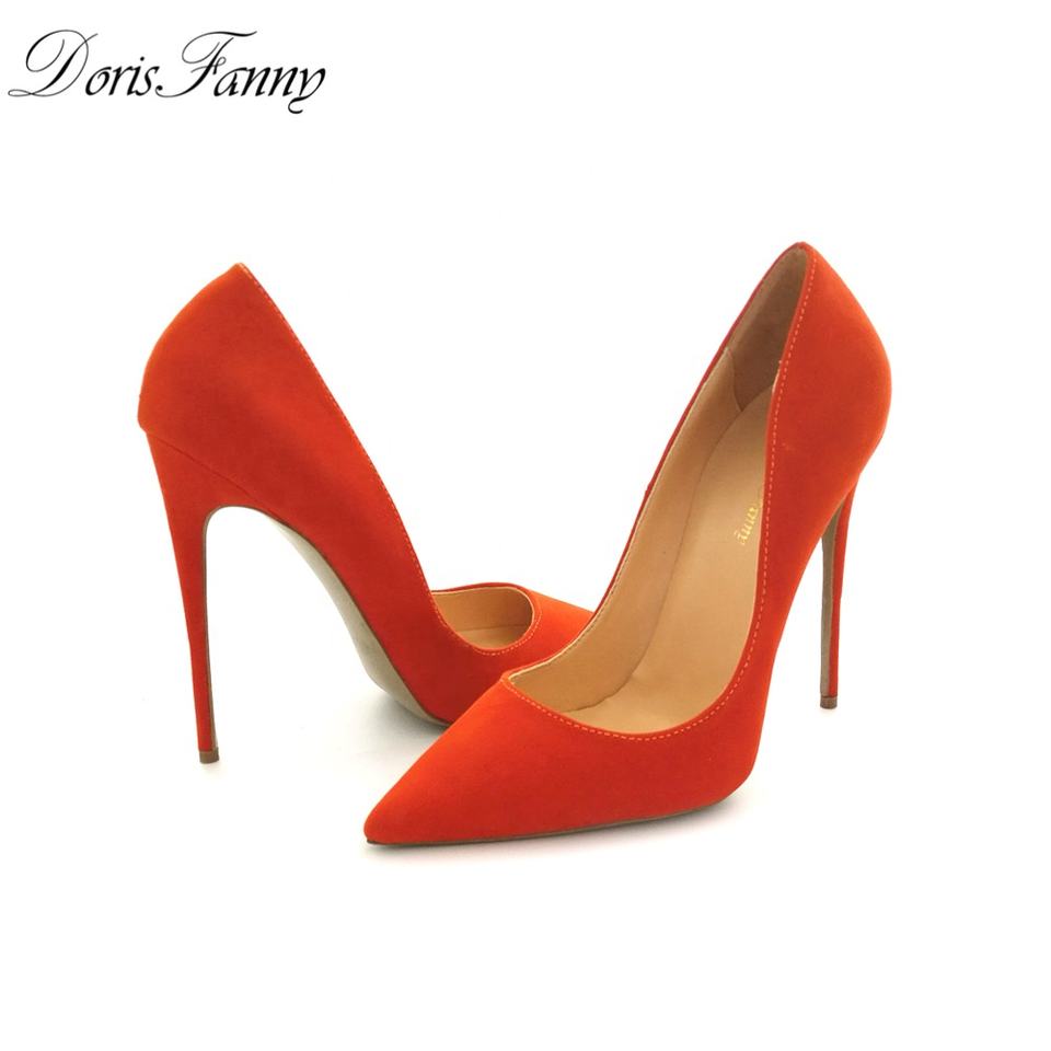 Genuine Leather Women's High Heels Pumps Ladies Fashion Shoes in Black Red Orange Blue Sexy Thin Heels Anti-Slippery Feature