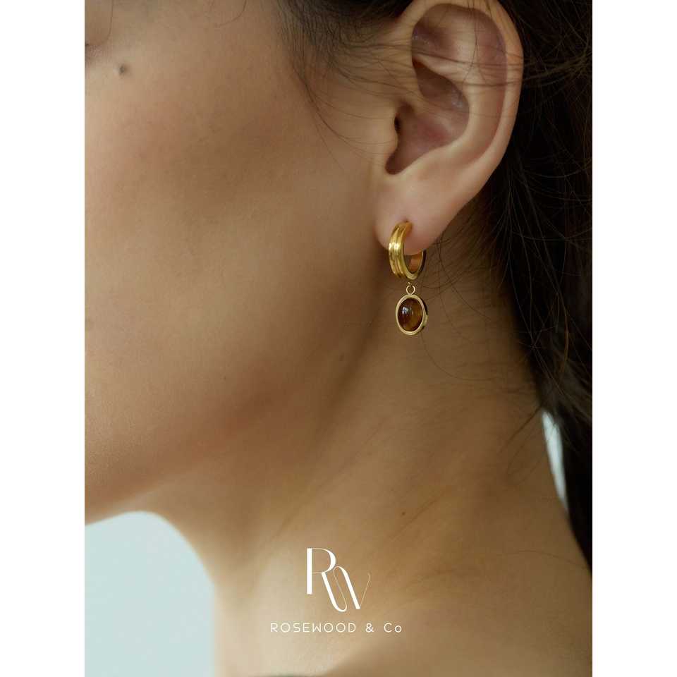 Orecchini a Goccia con Perle Autentiche e Gemme, Placcati in Oro 22k Anti-ossidazione, Cerchi Huggie con Pendenti in Occhio di Tigre, Idea Regalo