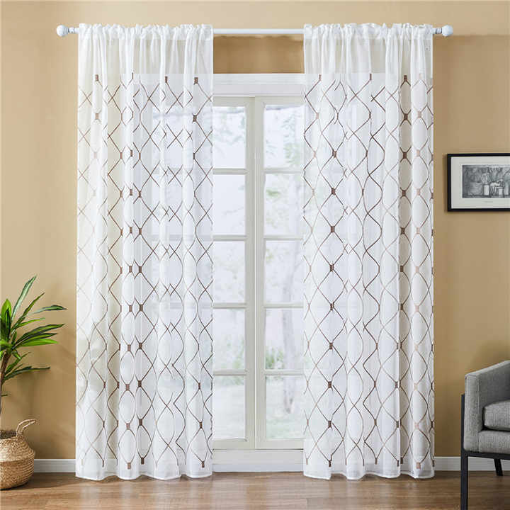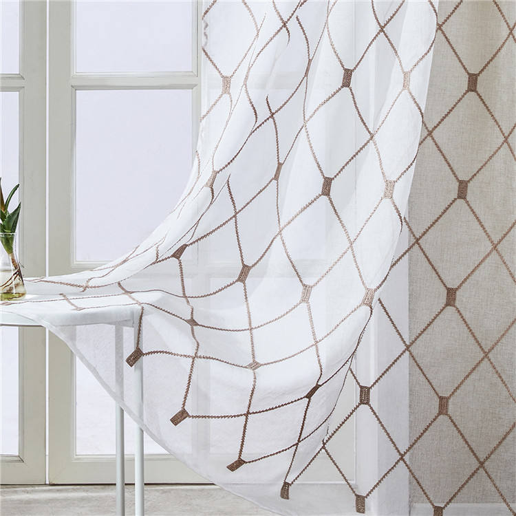 Geometrico Marrone Tessuto Voile Ricamato Camera Da Letto Finestra Tende di Tulle//Elegante di Alta Qualità Tende Da Sposa Per Bambini Tessuto