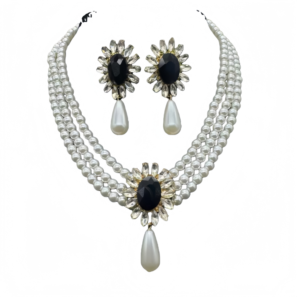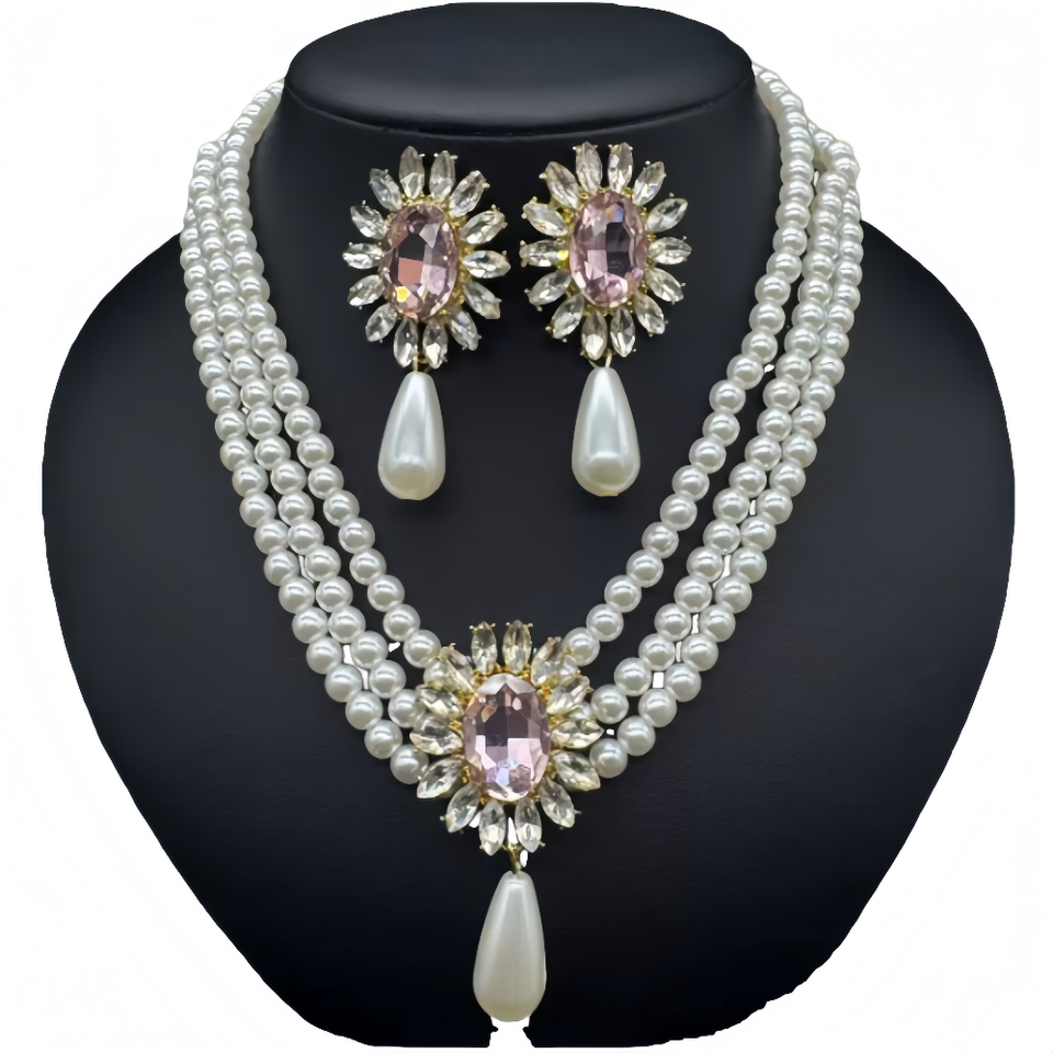 Set di gioielli geometrici in perle e cristallo-girocollo multistrato con orecchini abbinati