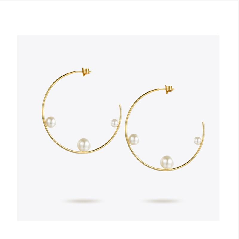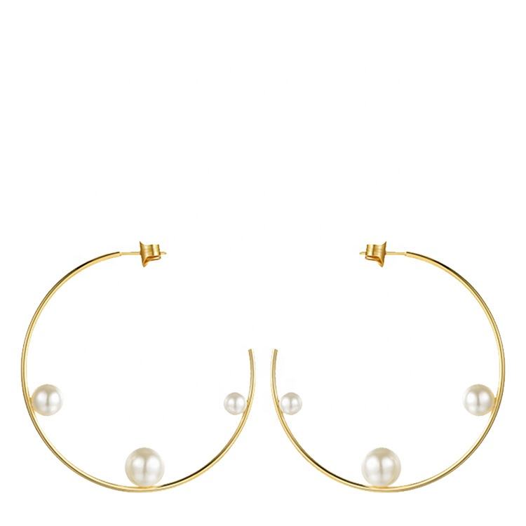Geometric Pearl Line Hoop Earrings Gold Color Stainless Steel Circle Earrings for Women Earings Wholesale EEF1014