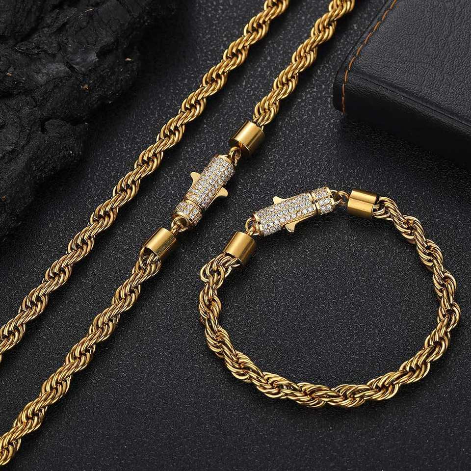 Collana e Bracciale a Catena Geometrica Trendy in Acciaio Inossidabile da 6mm per Gioielli Hip Hop da Uomo e Donna