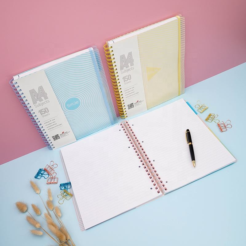 Materiale:Quaderno in pp trasparente a spirale in carta bianca