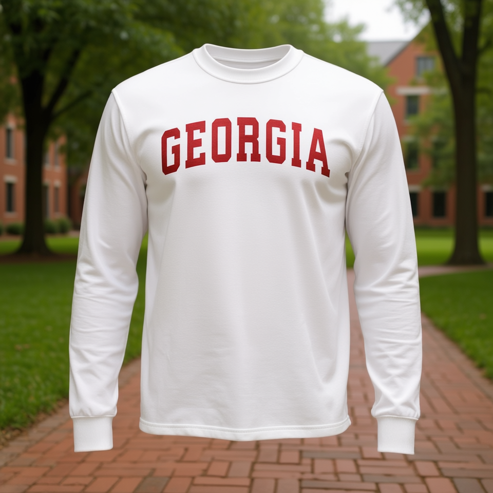 Maglietta a Maniche Lunghe Georgia, Girocollo in Cotone, Unisex per Adulti, Stile Vintage Atletico