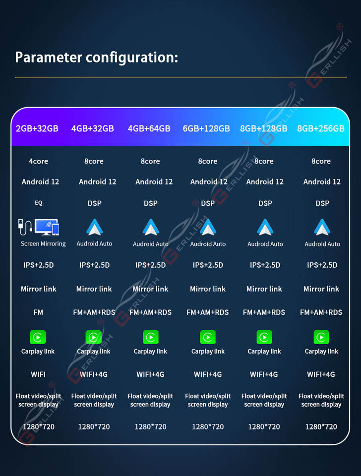 GPS, Stereo Stereo, Specchio Link, Android auto, Microfono incorporato, Schermo diviso, File Manager, Auto Controllo del Volante