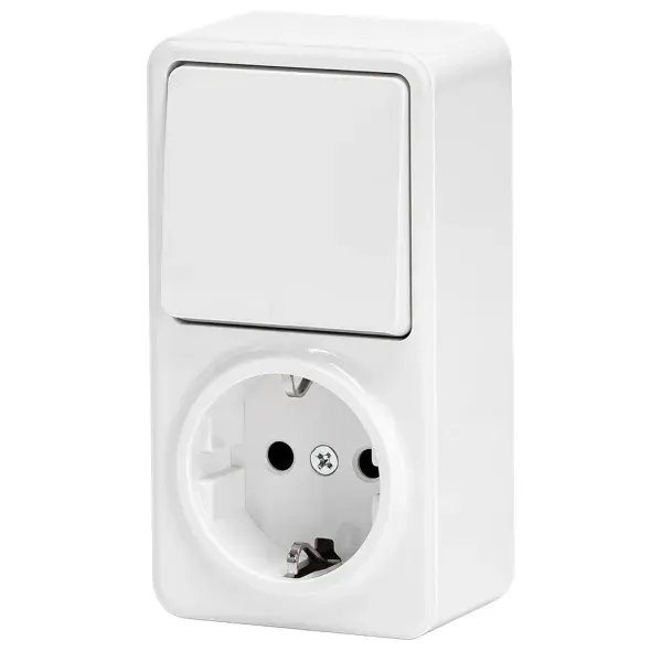 Interruttore e presa tedeschi a 1 via + 1 chiave, bianco, ideale per il controllo dell'illuminazione e il collegamento di dispositivi elettrici.