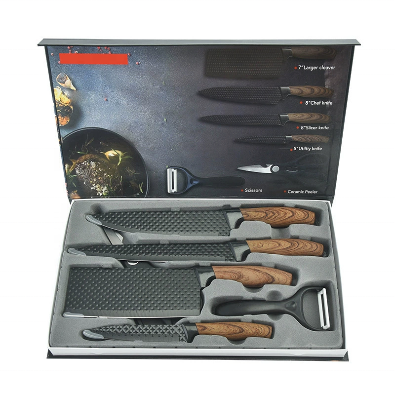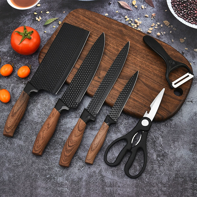 Set di coltelli da cucina in acciaio inossidabile stile tedesco con manici rivestiti, sei pezzi, set di coltelli da chef per verdura/frutta e forbici, ambidestro