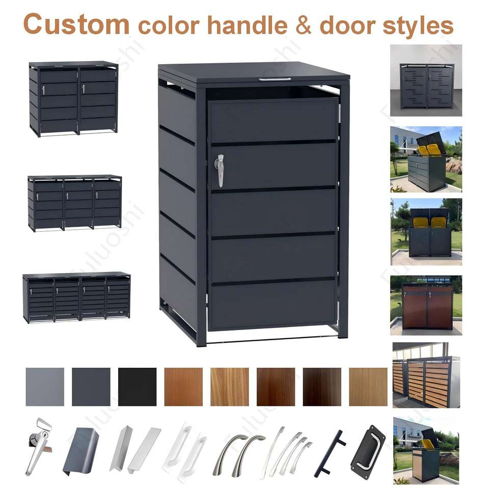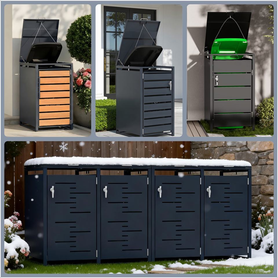 Copertura per bidone della spazzatura da esterno in metallo da 240L Germania, contenitore modulare espandibile per doppio bidone con ruote, copertura per pattumiera da patio