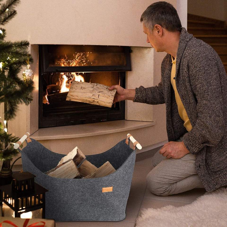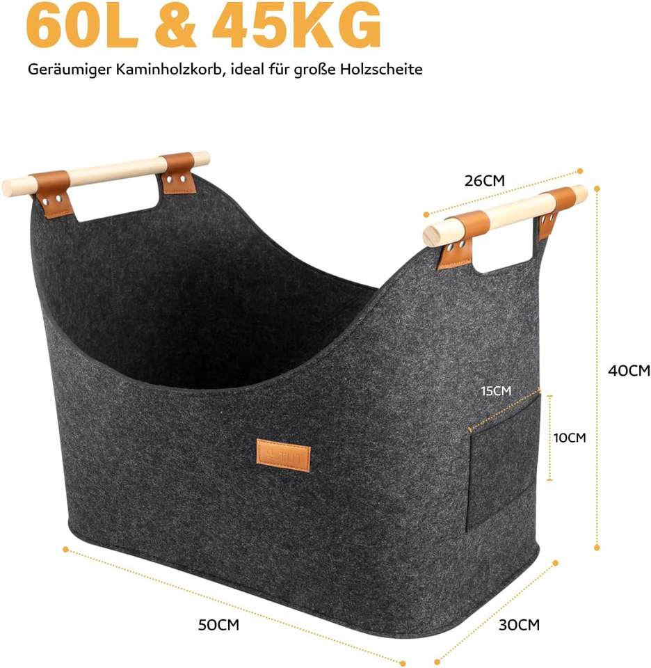 Borsa pieghevole in feltro legna da ardere cestini con manici in legno
